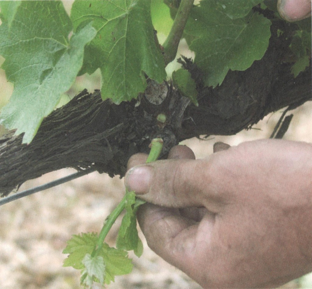 Tous les bourgeons et rameaux inutiles doivent être éliminés : trois passages sont nécessaires. Cela permet une bonne alimentation des rameaux porteurs de raisons, une convenable aération des grappes, un meilleur ensoleillement pour une maturité et une qualité sanitaire correctes. Cela prépare aussi la taille de l’année suivante, réduit les risques de maladies du bois (esca, eutypiose) et assure la longévité du cep. C’est le travail le plus long et le plus pénible qui peut être compléter par le pincement des rameaux secondaires, ou entre cœurs, pour aérer davantage.